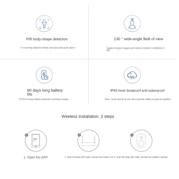 Two-Way Communication – With a built-in microphone and speaker, you can interact with delivery personnel, guests, or family members remotely through your smartphone.
